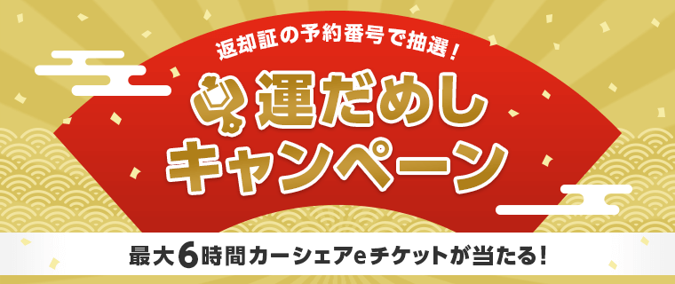 予約番号が当選番号と一致した方へ、最大6時間のカーシェアeチケットをプレゼント!ぜひエントリーしてご参加ください♪