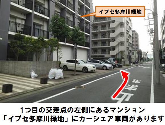 「六郷工科高校交差点」より徒歩約8分、マンション「イプセ多摩川緑地」の駐車スペースに設置しています。※当ステーションへの順路は、ステーションフォトギャラリーをご確認ください。※当ステーションは、固定式看板を設置しています。