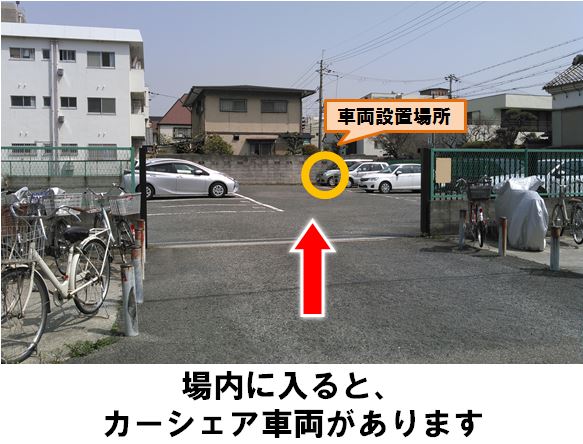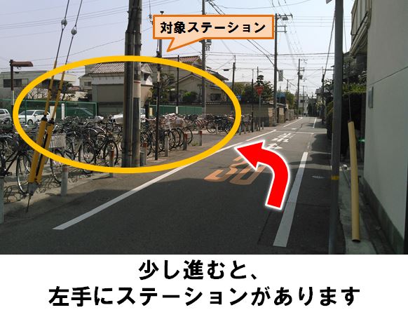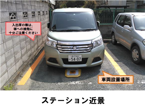 【ご注意】・前面道路は一方通行の為、出庫時は左折してください。・ステーションへの自転車・バイクでの来場・乗り入れは禁止です。「甲子園駅」東口改札より徒歩約3分、月極駐車場に設置しています。※当ステーションへの順路は、ステーションフォトギャラリーをご確認ください。※当ステーションは、固定式看板を設置しています