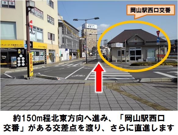 「岡山駅」西口より徒歩約5分、月極駐車場に設置しています。※当ステーションへの順路は、ステーションフォトギャラリーをご確認ください。※当ステーションは、固定式看板を設置しています。