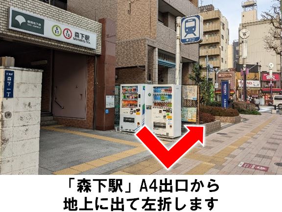 【ご注意】当ステーションの前面道路は、一方通行のためご注意ください。ステーションへのバイク・自転車での来場・乗り入れは禁止です。ご返却の際は、指定の枠内にまっすぐ駐車してください。「都営大江戸線 森下駅 A4出口」より徒歩約3分、マンション「ヴェレ森下」駐車場に設置しています。※当ステーションへの順路はステーションフォトギャラリーをご確認ください※当ステーションは、スタンド看板を撤去しています