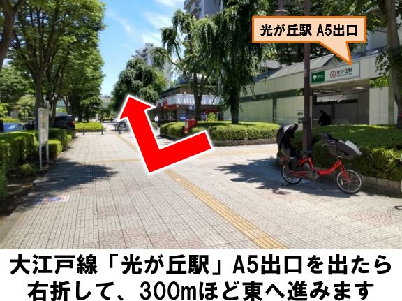都営大江戸線「光が丘駅」A5出口より徒歩約5分、マンション「ネオアージュ光が丘」駐車場に設置しています。※当ステーションへの順路はステーションフォトギャラリーをご確認ください。※当ステーションは、スタンド看板を撤去しています。