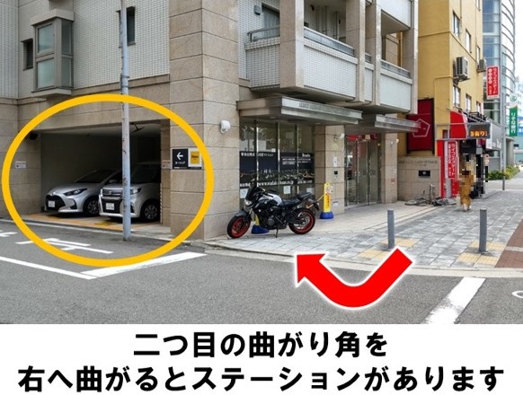 ゴミは車内や場内に置かず、必ずお持ち帰りください。自転車での乗り入れは禁止です。「地下鉄西大橋駅」2番出口より徒歩約1分です。※当ステーションへの順路はステーションフォトギャラリーをご確認ください※当ステーションは、スタンド看板を撤去しています