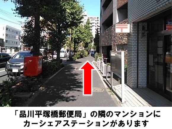 当ステーションの出入口にはチェーンゲートが設置されています。入出庫の際は、車内に備え付けのリモコンをご利用ください。チェーンが完全に下がったことを確認して、通過してください。【ご注意】ご返却時は後進入庫(バックでの駐車)でお願いいたします。ご返却の際は、指定の枠内にまっすぐ駐車してください。「平塚橋陸橋」より徒歩約5分、マンション「アーバネックス戸越銀座」駐車場に設置しています。※当ステーションへの順路はステーションフォトギャラリーをご確認ください※当ステーションは、スタンド看板を撤去しています