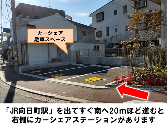 【ご注意】本ステーションは3台とも車止めの位置が異なりますので、車止めの乗り越えにご注意ください。「JR向日町駅」より徒歩約1分です。※当ステーションへの順路はステーションフォトギャラリーをご確認ください※当ステーションは、スタンド看板を撤去しています