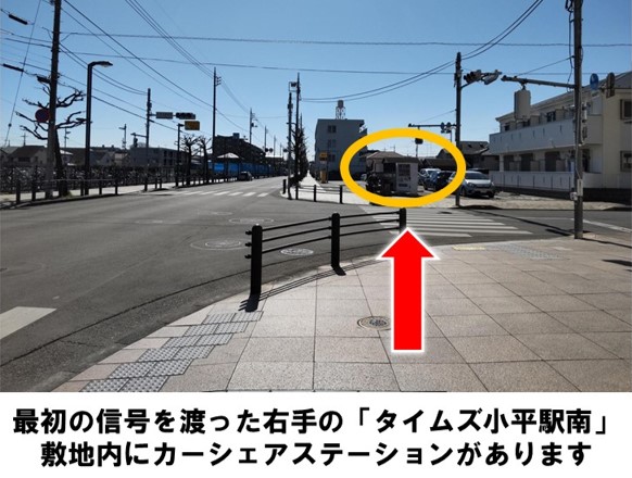 【ご注意】・カーシェア専用駐車スペース以外には駐車できませんので、必ず元の場所にお戻しください。・ご返却の際は指定の枠内に駐車してください。・入出庫の際は歩行者に十分ご注意ください。・ステーションへのバイク・自転車の乗り入れは禁止しております。・車内美化にご協力をお願いいたします。・ルールやマナーをお守りいただけない場合、調査の上、警告や退会処分等の対応をおこなう場合があります。「ルネこだいら(小平市民文化会館)」より徒歩約1分、「タイムズ小平駅南」に設置しています。※当ステーションへの順路はステーションフォトギャラリーをご確認ください