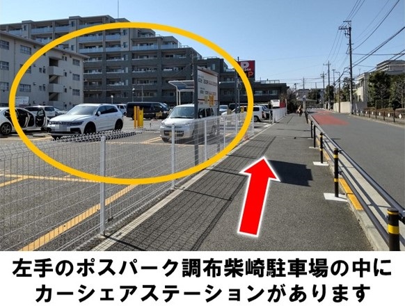 京王バス「柴崎二丁目バス停」より徒歩約1分、「ポスパーク調布柴崎」に設置しています。※当ステーションへの順路はステーションフォトギャラリーをご確認ください※当ステーションは、スタンド看板を撤去しています