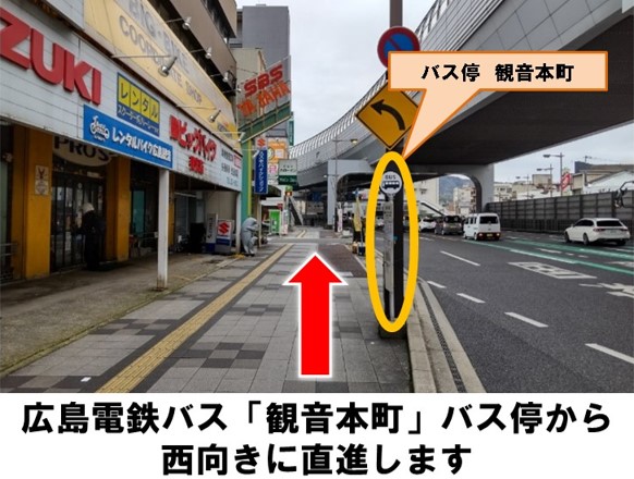 【ご注意】前面道路は一方通行の為、出庫時は右折してください。出庫の際は周囲に十分ご注意ください。広島電鉄バス「観音本町」バス停より徒歩約3分です。※当ステーションへの順路はステーションフォトギャラリーをご確認ください※当ステーションは、スタンド看板を撤去しています