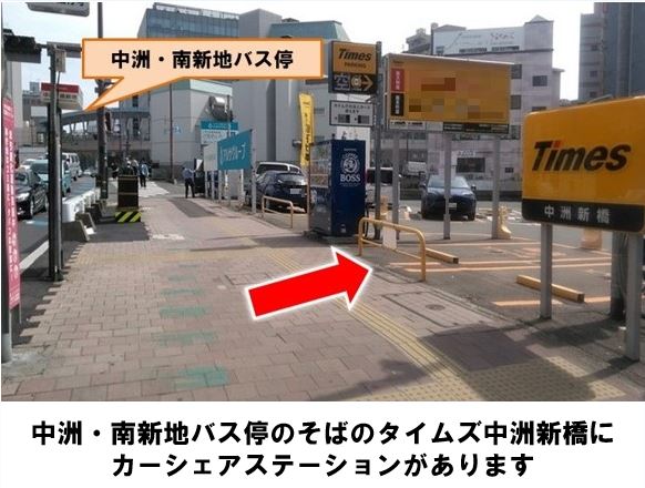 【ご注意】当ステーションは駐車位置が一部離れた8、9、10番にもカーシェア車両を設置しています。西鉄バス「中洲・南新地」バス停より徒歩約1分、「タイムズ中洲新橋」に設置しています。※当ステーションへの順路はステーションフォトギャラリーをご確認ください※当ステーションは、一部スタンド看板を撤去しています