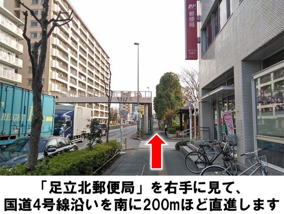 「足立北郵便局」より徒歩約5分です。※当ステーションへの順路はステーションフォトギャラリーをご確認ください※当ステーションは、スタンド看板を撤去しています