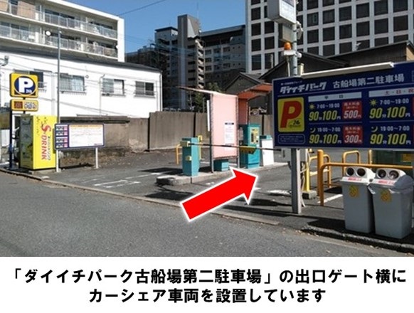【ご注意】入出庫の際は、車内に備え付けの「駐車パスカード(定期券)」をご利用ください。「古船場公園」より徒歩約1分です。※当ステーションへの順路はステーションフォトギャラリーをご確認ください※当ステーションは、スタンド看板を撤去しています