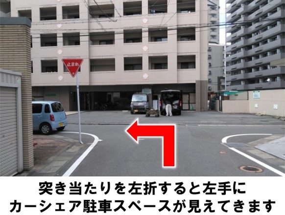 【ご注意】ご返却時は後進入庫(バックでの駐車)でお願いいたします。場内や付近でのアイドリングは禁止です。車内美化にご協力をお願いいたします。春吉交番西交差点より徒歩約1分です。※当ステーションへの順路はステーションフォトギャラリーをご確認ください