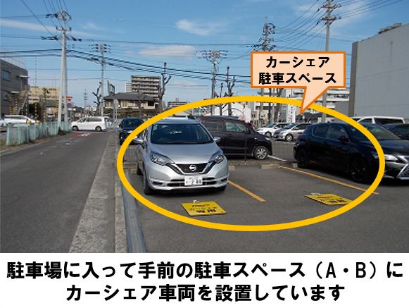 予約登録完了メールとは別に、車種・ナンバーは利用開始時間の約20分前にメールでお知らせします。車種・ナンバーをお知らせするメールが届いた後、変更できる項目が限られます。(返却予定日時、安心補償サービス、追加運転者、カーシェアeチケットのみ)※安心補償サービスは利用開始以降変更できません。他の項目を変更される場合は、一旦取り消しをして、再度ご予約をお願いしておりますが、その際にも車両準備時間が必要となります。【ご注意】近くに踏切がありますので、出入庫の際は周囲に十分ご注意ください。出庫時は歩行者や自転車等に十分ご注意ください。「高松市立桜町中学校」より徒歩約3分、駐車場内「B」のスペースに設置しています。※当ステーションへの順路はステーションフォトギャラリーをご確認ください