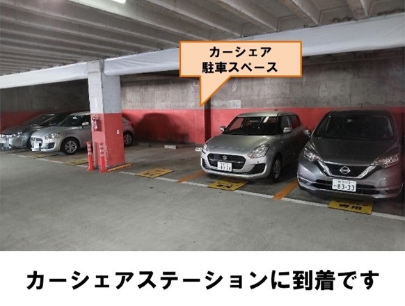【ご注意】入出庫の際は、車内に備え付けの「駐車パスカード(定期券)」をご利用ください。ゴミは必ずお持ち帰りください。「万代シティ第一駐車場」に設置しています。※当ステーションへの順路はステーションフォトギャラリーをご確認ください
