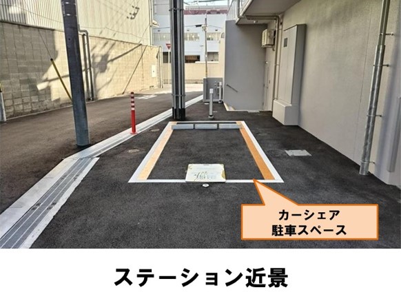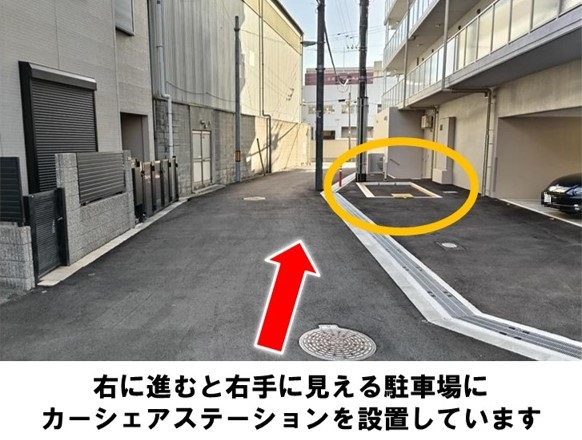 【ご注意】駐車場内には月極駐車スペースもあります。必ずカーシェア車室へ返却をお願いいたします。「大淀中5交差点」より徒歩約1分、マンション東側に設置していますす。