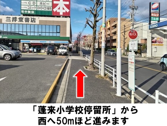 名古屋市営バス「蓬来小学校停留所」より徒歩約6分です。