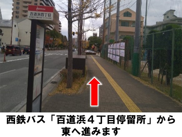 西鉄バス「百道浜4丁目停留所」より徒歩約8分です。