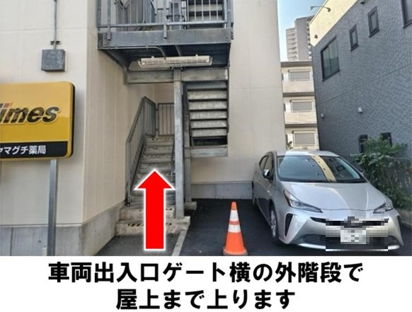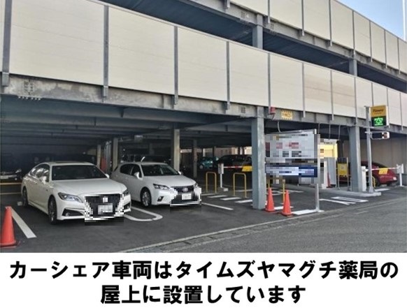 タイムズヤマグチ薬局の屋上に車を設置しています。