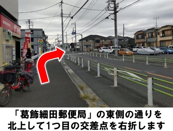 「葛飾細田郵便局」より徒歩約1分です。