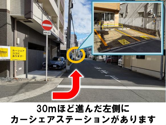 【ご注意】前面道路は一方通行の為、出庫時は右折してください。「JR玉造駅」より徒歩約5分です。※当ステーションへの順路はステーションフォトギャラリーをご確認ください
