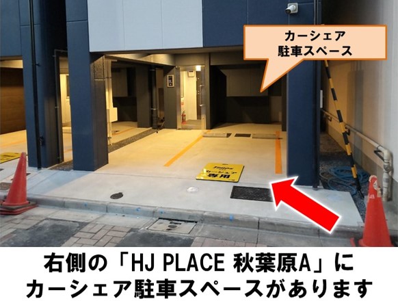 【ご注意】ご返却の際は場内の枠内に駐車してください。ご返却の際は必ず貸出時と同じ場所にお戻しください。別のカーシェアステーション「HJ PLACE 秋葉原B」と隣接しているため、お間違いのないようご注意ください。当ステーションは下記時間帯において前面道路に時間規制があります。規制時間:13:00-19:00通行時は助手席前(グローブボックス内)に入っている通行許可証を車両前面の見やすい箇所に掲示し、通行人等に十分ご注意の上走行してください。東京メトロ日比谷線「仲御徒町駅」より徒歩約5分、「HJ PLACE 秋葉原A」に設置しています。※当ステーションへの順路はステーションフォトギャラリーをご確認ください