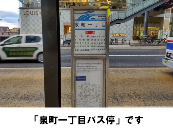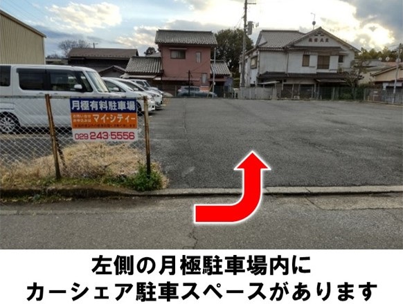【ご注意】前面道路一方通行のため右折出庫してください。入出庫時は歩行者や自転車等に十分ご注意ください。ご返却の際は、指定の枠内にまっすぐ駐車してください。ゴミは必ずお持ち帰りください。関鉄グリーンバス「泉町一丁目バス停」より徒歩約3分です。※当ステーションへの順路はステーションフォトギャラリーをご確認ください