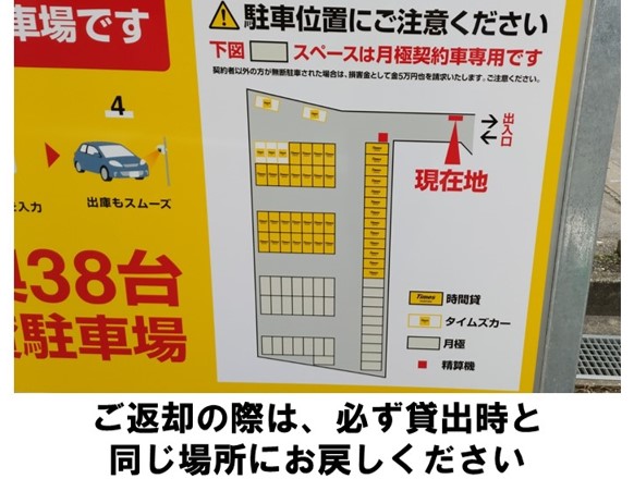 【ご注意】出庫時の駐車場の精算は必要ありません。ご返却時は後進入庫(バックでの駐車)でお願いいたします。ゴミは必ずお持ち帰りください。JR「大野城駅」より徒歩約2分です。※当ステーションへの順路はステーションフォトギャラリーをご確認ください