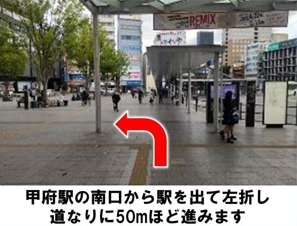JR「甲府駅」より徒歩約10分、月極駐車場のNo.1、2、3、4、5に設置しています。※当ステーションへの順路は、ステーションフォトギャラリーをご確認ください※当ステーションは、固定式看板を設置しています
