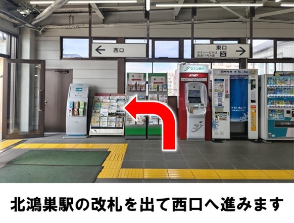 JR北鴻巣駅より徒歩約5分です。※当ステーションへの順路はステーションフォトギャラリーをご確認ください※当ステーションは、固定式看板を設置しています