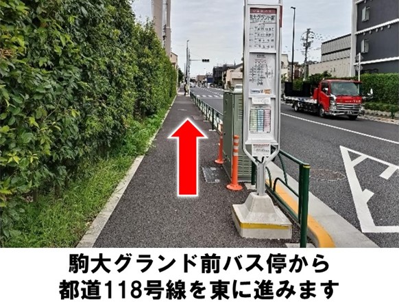 小田急バスの駒大グランド前バス停より徒歩約5分です。