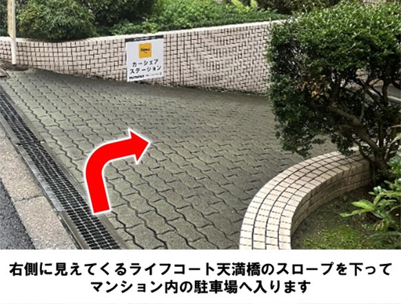 【ご注意】カーシェア専用駐車スペース以外には駐車できませんので、必ず元の場所にお戻しください。天満橋交差点より徒歩約5分です。※当ステーションへの順路はステーションフォトギャラリーをご確認ください