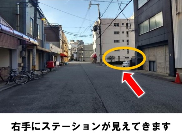【ご注意】・ゴミは必ずお持ち帰りください。・返却時は車止めまで下がって枠からはみ出さないで下さい。地下鉄大国町駅より徒歩約3分です。※当ステーションへの順路はステーションフォトギャラリーをご確認ください