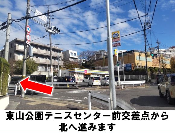 東山公園テニスセンター前交差点より徒歩約1分です。