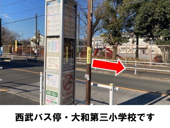 【ご注意】入出庫の際は歩行者に十分ご注意ください。入出庫の際はクルマの周辺設置物や壁への接触にご注意ください。西武バス停・大和第三小学校より徒歩約4分です。※当ステーションへの順路はステーションフォトギャラリーをご確認ください