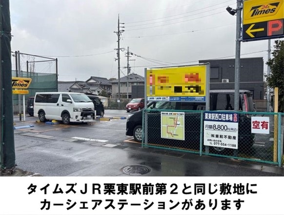 【ご注意】入出庫の際は歩行者に十分ご注意ください。カーシェア専用駐車スペース以外には駐車できませんので、必ず元の場所にお戻しください。ゴミは必ずお持ち帰りください。JR栗東駅より徒歩約2分です。※当ステーションへの順路はステーションフォトギャラリーをご確認ください