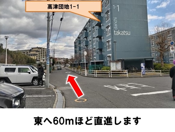 東洋バスの高津団地北バス停より徒歩約2分です。