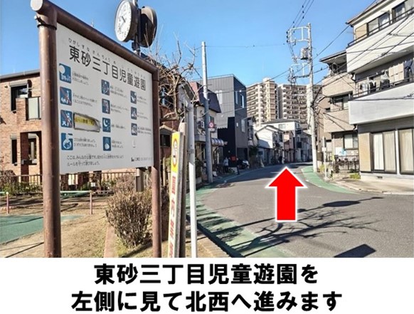 【ご注意】ステーションへのバイク・自転車の乗り入れは禁止しております。ゴミは必ずお持ち帰りください。ご利用の際は、騒音など近隣の方へのご配慮お願いいたします。場内や付近でのアイドリングは禁止です。入出庫の際はクルマの周辺設置物や壁への接触にご注意ください。【通行規制あり】当ステーションは下記時間帯において周辺道路に時間規制があります。規制時間:土・日曜、休日を除く7:30-8:30通行時は助手席前(グローブボックス内)に入っている通行許可証を車両前面の見やすい箇所に掲示し、通行人等に十分ご注意の上走行してください。東砂三丁目児童遊園より徒歩約3分です。※当ステーションへの順路はステーションフォトギャラリーをご確認ください