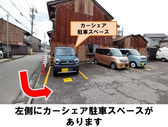【ご注意】ステーションへのバイク・自転車の乗り入れは禁止しております。ゴミは必ずお持ち帰りください。ご利用の際は、騒音など近隣の方へのご配慮お願いいたします。前面道路は一方通行のため、右折出庫してください。カーシェア専用駐車スペース以外には駐車できませんので、必ず元の場所にお戻しください。JR金沢駅より徒歩約10分です。※当ステーションへの順路はステーションフォトギャラリーをご確認ください