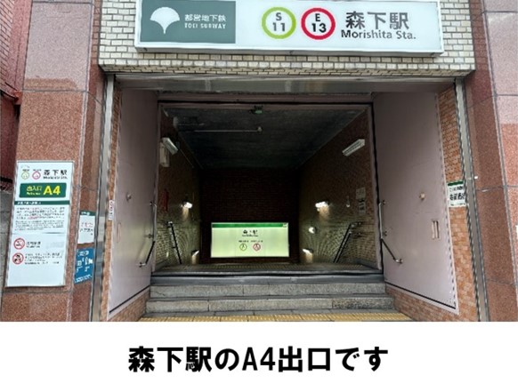 【ご注意】前面道路は一方通行のため、左折出庫してください。入出庫の際はクルマの周辺設置物や壁への接触にご注意ください。ゴミは必ずお持ち帰りください。住宅街のため、駐車方法、騒音など近隣の方へのご配慮をお願いいたします。ペットの同乗は禁止しております。ルールやマナーをお守りいただけない場合、調査の上、警告や退会処分等の対応をおこなう場合があります。都営地下鉄の森下駅より徒歩約4分です。※当ステーションへの順路はステーションフォトギャラリーをご確認ください