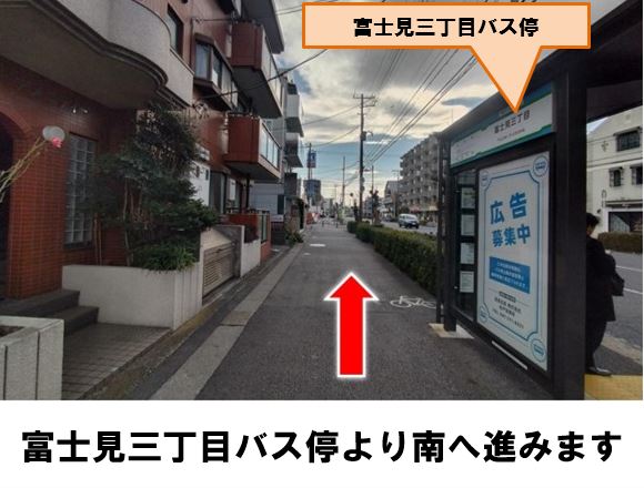 【ご注意】前面道路は一方通行のため、左折出庫してください。富士見三丁目バス停より徒歩約3分です。※当ステーションへの順路はステーションフォトギャラリーをご確認ください