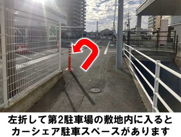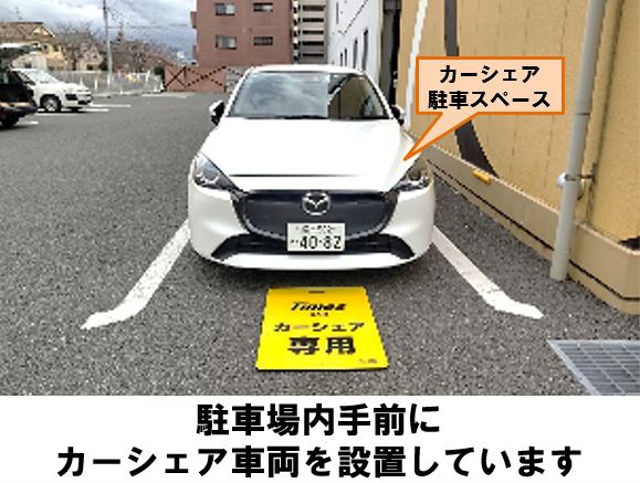 【ご注意】ステーションはモナコパレス浜線店第2駐車場内にあります。指定のスペース以外は駐車しないでください。予約登録完了メールとは別に、車種・ナンバーは利用開始時間の約20分前にメールでお知らせします。車種・ナンバーをお知らせするメールが届いた後、変更できる項目が限られます。(返却予定日時、安心補償サービス、追加運転者、カーシェアeチケットのみ)※安心補償サービスは利用開始以降変更できません。他の項目を変更される場合は、一旦取り消しをして、再度ご予約をお願いしておりますがその際にも車両準備時間が必要となります。ご利用の際は、騒音など近隣の方へのご配慮お願いいたします。入出庫の際はクルマの周辺設置物や壁への接触にご注意ください。ご返却の際は後進入庫(バックでの駐車)でお願いいたします。熊本バス・熊本都市バスの八王寺団地前バス停より徒歩約7分です。※当ステーションへの順路はステーションフォトギャラリーをご確認ください