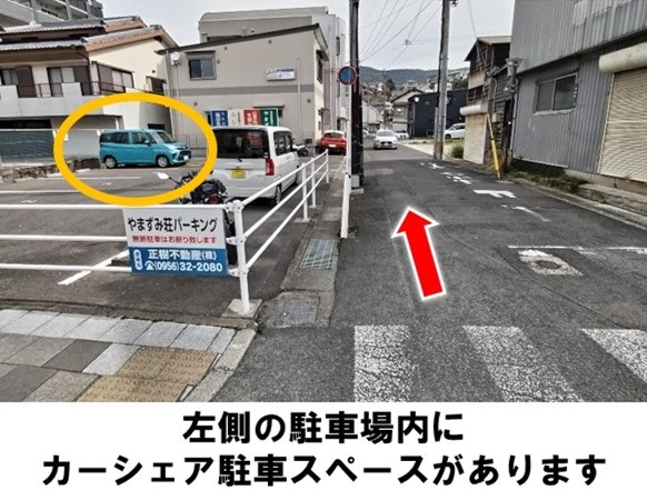 【ご注意】・駐車の際はご迷惑にならないよう枠内の中央に駐車してください。・ステーションへのバイク・自転車の乗り入れは禁止しております。・全車両禁煙ですのでご注意ください。・ペットの同乗は禁止しております。・車内美化にご協力をお願いいたします。・乗り降りの際のドア開閉は慎重におこない、隣の車両に当たらないようご注意ください。・カーシェア専用駐車スペース以外には駐車できませんので、必ず元の場所にお戻しください。・入出庫の際は歩行者に十分ご注意ください。・ルールやマナーをお守りいただけない場合、調査の上、警告や退会処分等の対応をおこなう場合があります。西肥バスの変電所入口バス停より徒歩約1分です。※当ステーションへの順路はステーションフォトギャラリーをご確認ください