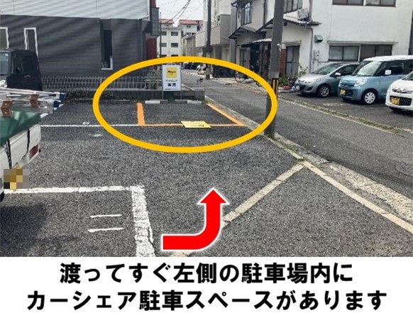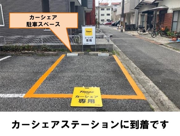【ご注意】ご返却の際は指定のオレンジの枠内に駐車してください。庚午交番より徒歩約1分です。※当ステーションへの順路はステーションフォトギャラリーをご確認ください