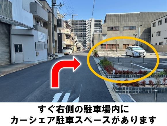 【ご注意】ステーションへのバイク・自転車の乗り入れは禁止しております。ゴミは必ずお持ち帰りください。住宅街のため、駐車方法、騒音など近隣の方へのご配慮をお願いいたします。乗り降りの際のドア開閉は慎重におこない、隣の車両に当たらないようご注意ください。ルールやマナーをお守りいただけない場合、調査の上、警告や退会処分等の対応をおこなう場合があります。御幣島2交差点より徒歩約5分です。※当ステーションへの順路はステーションフォトギャラリーをご確認ください