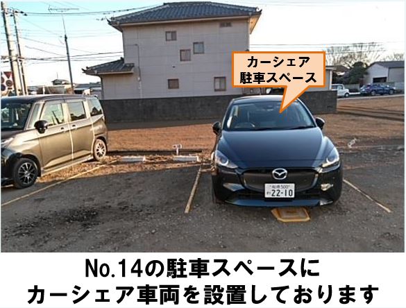 【ご注意】・カーシェア駐車スペースはNo14の1区画のみです。必ず「カーシェア専用」と記載のある駐車スペースへご返却ください。・ゴミは駐車場内に放置せずお持ち帰りください。※ルールやマナーをお守りいただけない場合は会員資格取消しとなる場合がございます。