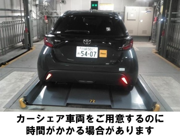 【カーシェア営業時間】(平日)8:00-21:30、(土日祝)9:30-21:30※時間外の貸出・返却はできません。上記時間をまたぐ予約は可能です。予約登録完了メールとは別に、車種・ナンバーは利用開始時間の約20分前にメールでお知らせします。車種・ナンバーをお知らせするメールが届いた後、変更できる項目が限られます。(返却予定日時、安心補償サービス、追加運転者、カーシェアeチケットのみ)※安心補償サービスは利用開始以降変更できません。他の項目を変更される場合は、一旦取り消しをして、再度ご予約をお願いしておりますがその際にも車両準備時間が必要となります。
