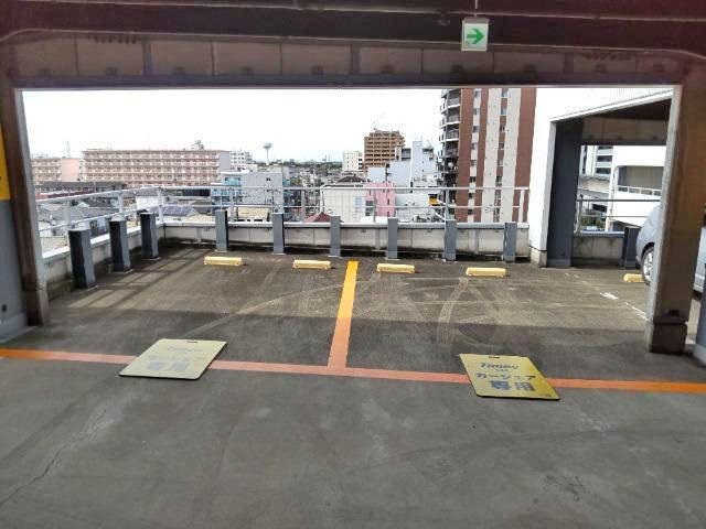※カーシェア車両は立体駐車場の6階に設置されています。店内のエレベーターで6階までお上がりください。エレベーターを降りて右手側に出ると、正面にカーシェア専用駐車スペースがございます。※店舗営業時間外は店外の外階段を使用して6階までお上がりください。外階段は立体駐車場入り口付近、駐輪場のすぐ左手側にございます。6階までお上がりいただき正面に進み、1つ目の交差路を右手に進み半階降りていただくと、エレベーター付近にカーシェア専用スペースがございます。※当ステーションは、スタンド看板を撤去しています。