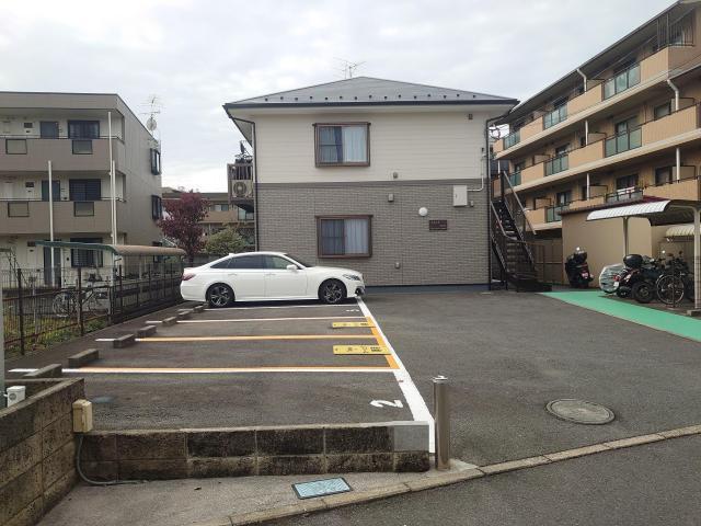 ・車両は枠内中央に車止めの位置までしっかりと下げて駐車してください。